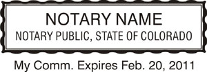 Notary Stamps are custom made to meet with Colorado Notary Commission Requirements.Specifications include size, shape, acceptable text and indicia in accordance with regulation licensing requirements.