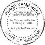 Notary Seals are custom made to meet with Michigan Notary Commission Requirements.Specifications include size, shape, acceptable text and indicia in accordance with regulation licensing requirements.