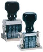 Millenium Metal Daters are furnished with wooden handles, deep molded bands of natural rubber, and chrome plated steel frames. These line daters feature the convenience of a self-inking stamp with abbreviated month bands followed by the day and full year bands. Dates are changeable by hand. more…